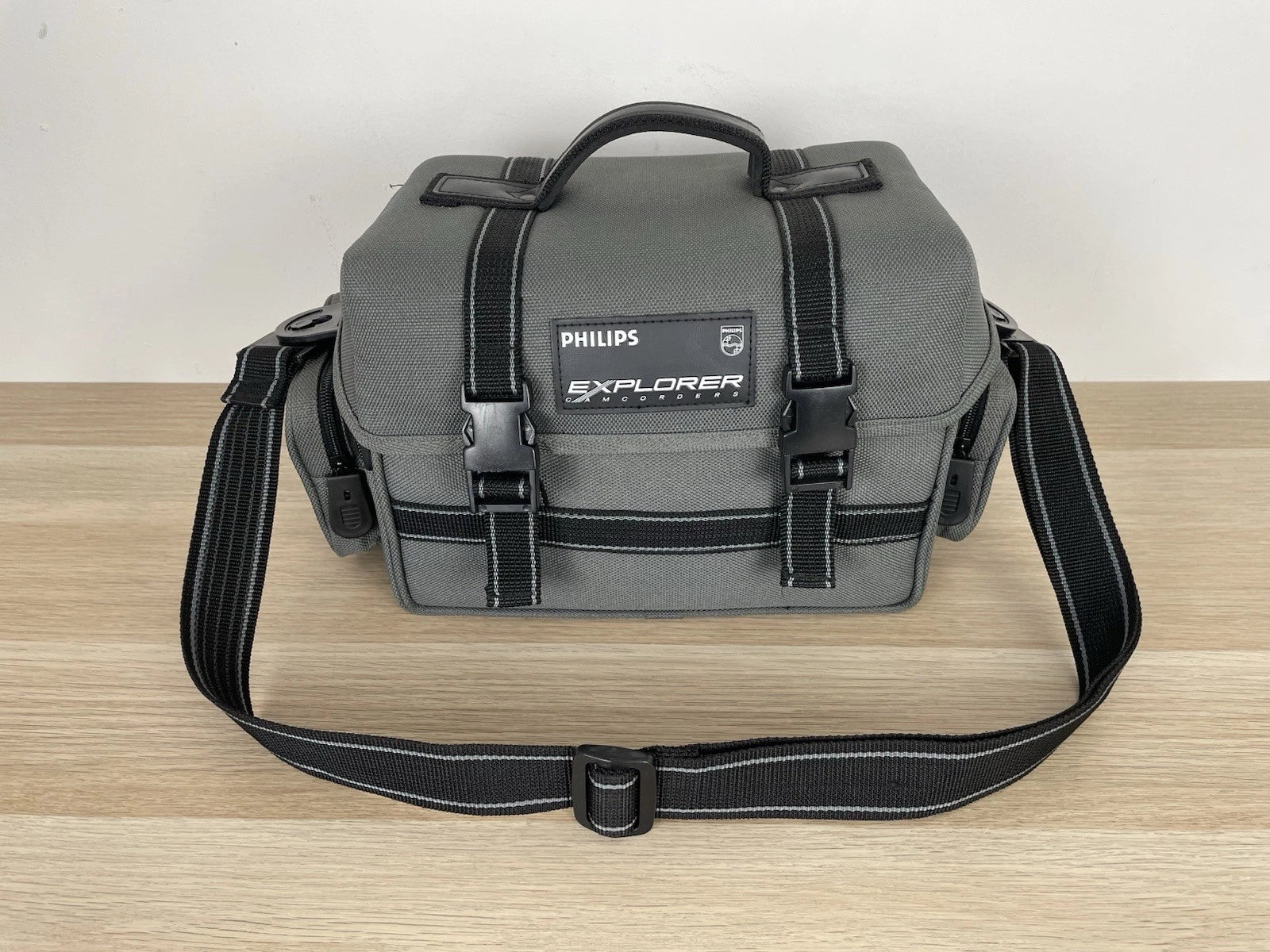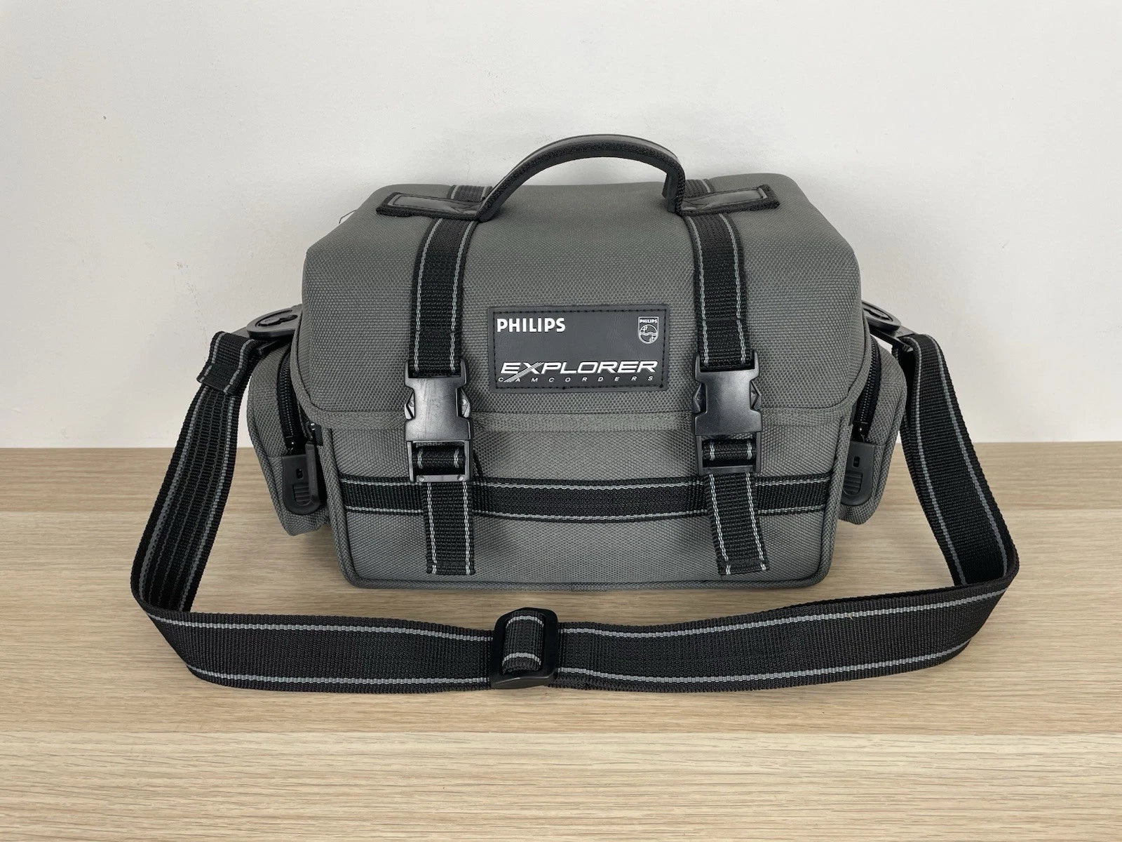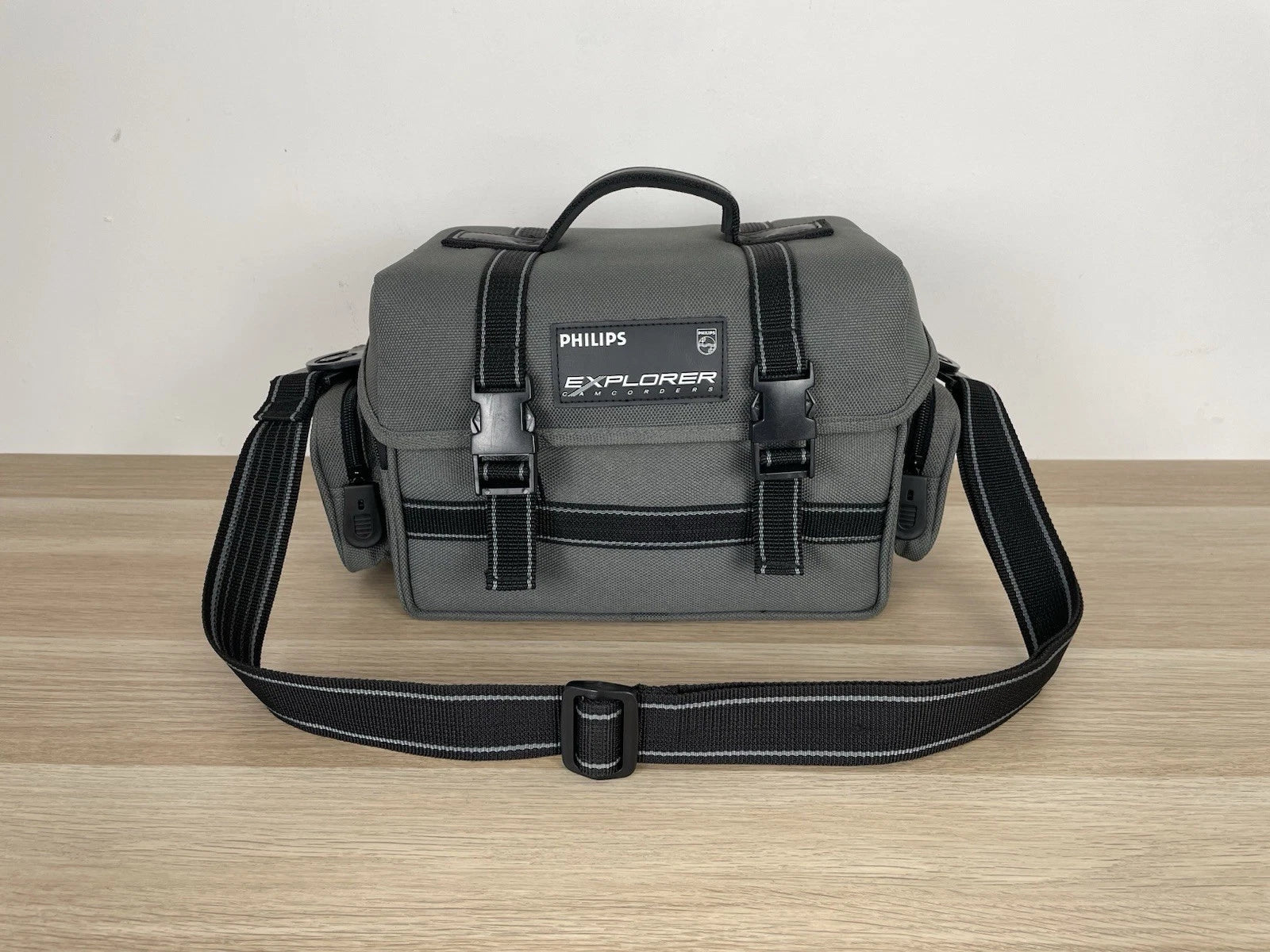 La borsa si presenta in ottimo stato di conservazione, visionare attentamente tutte le fotografie nel dettaglio. Dotata di foglio illustrativo Philips con istruzioni d'uso in italiano. Oltre al vano principale, presente una tasca frontale, due tasche laterali e una tasca con cerniera sul retro. Si vende ciò che si vede in foto. Perfetta per il trasporto dell'attrezzatura fotografico.