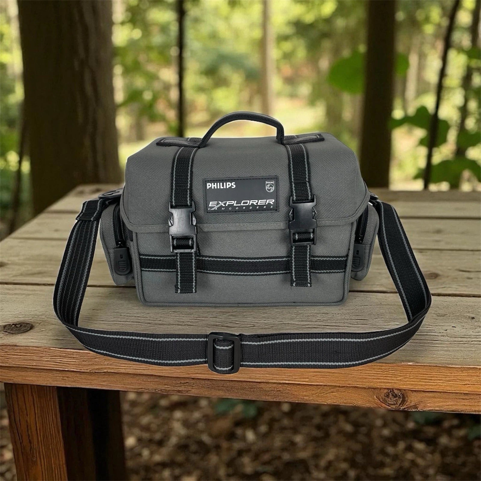 Borsa morbida universale per videocamere compact, per fotocamere e attrezzatura fotografica Philips Explorer AV1075, colore grigio e nero, tessuto sintetico tecnico, misure 30x17x19 cm, con tracolla e manici.