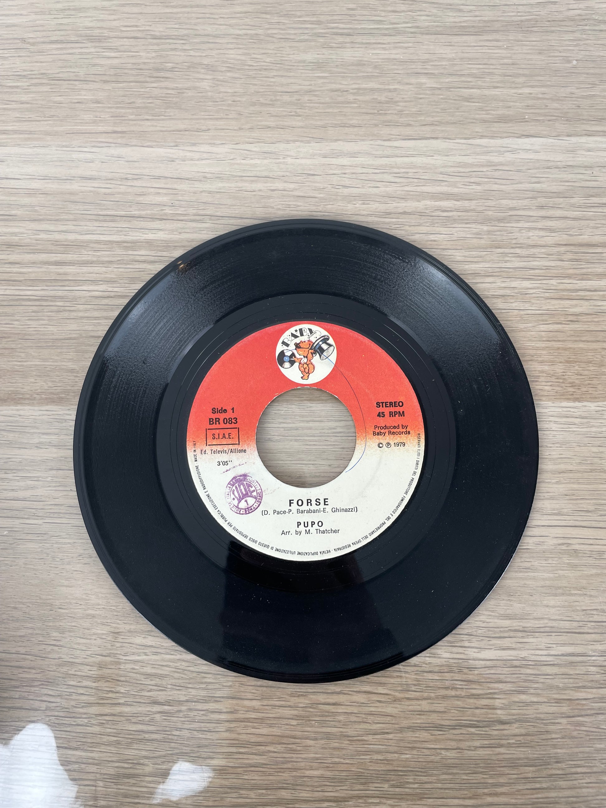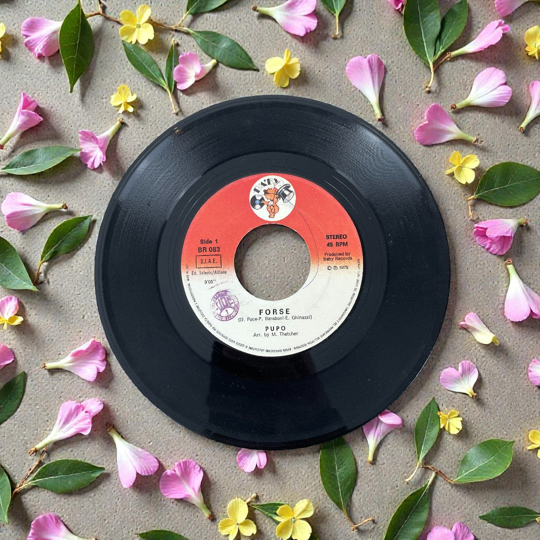 Disco 45 giri "Cercami Ancora". Singolo originale su vinile 45 giri – 7″ di Pupo, pubblicato nel 1979 dalla Baby Records. Il lato A contiene Forse, uno dei suoi più grandi successi radiofonici di fine anni ’70, scritto da Enzo Ghinazzi insieme ad altri autori. Il lato B propone Cercami Ancora, altro brano melodico tipico del repertorio dell’artista.