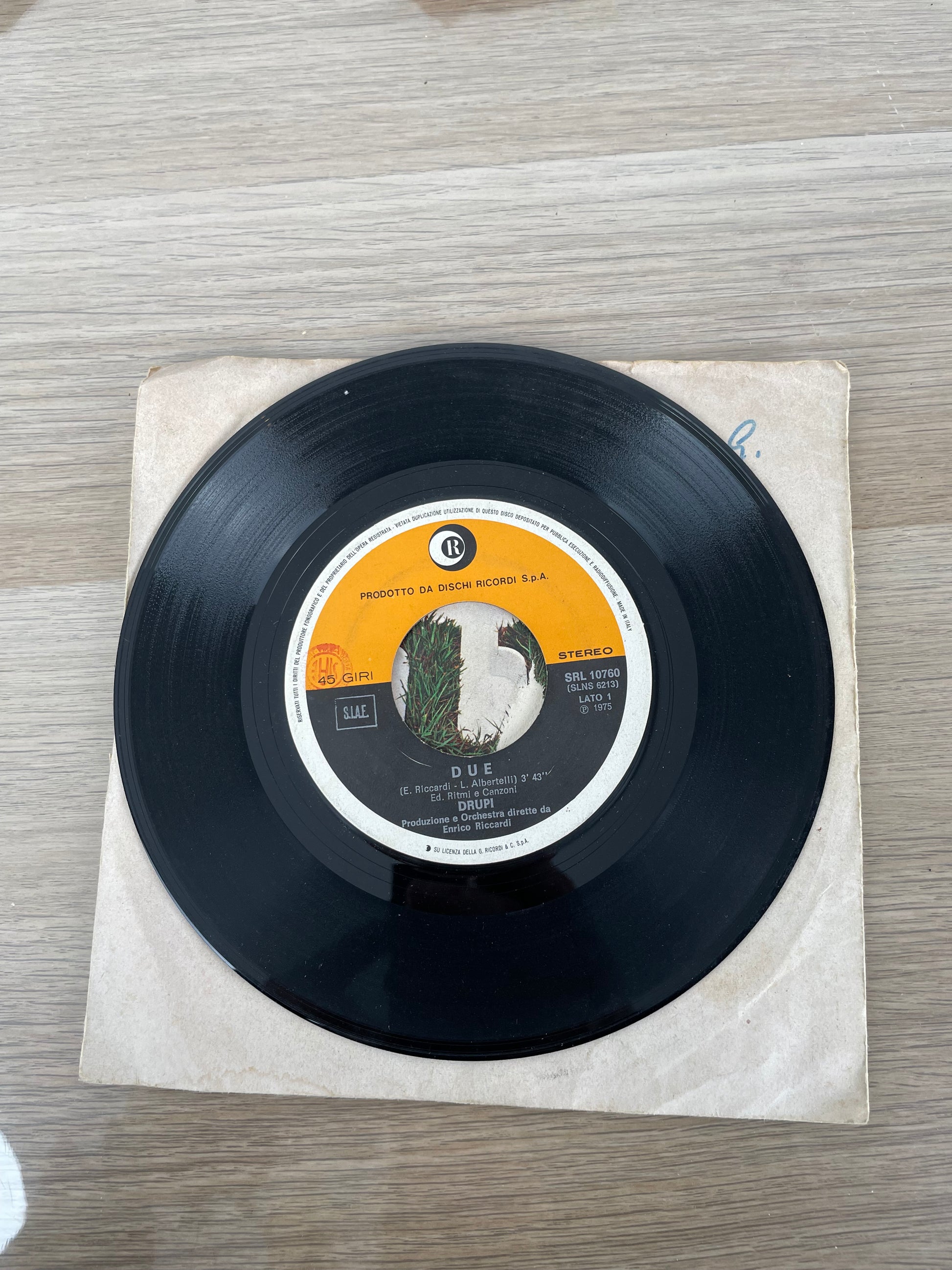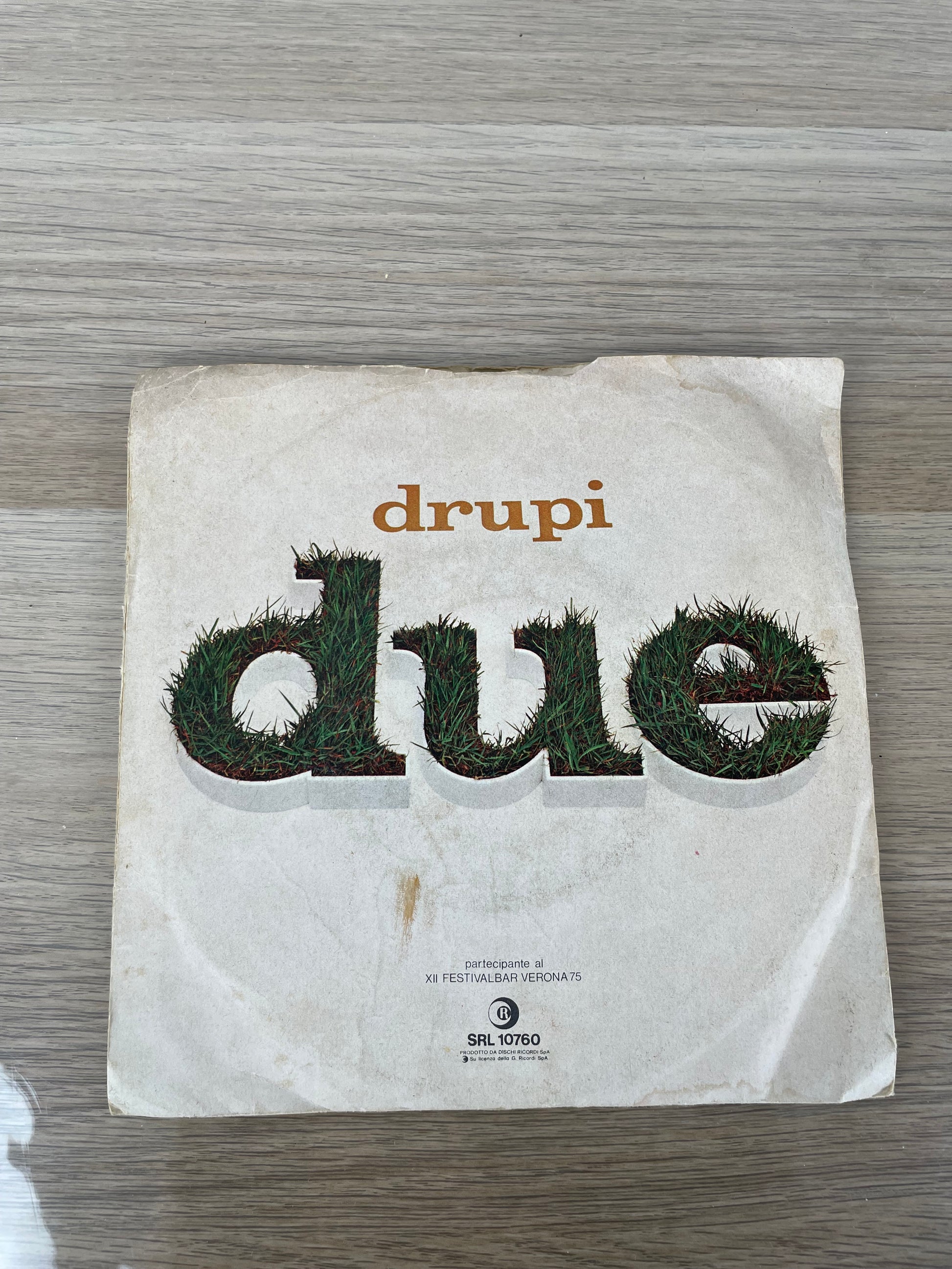Disco 45 giri "Due". Singolo originale su vinile 45 giri di Drupi, cantante tra i più rappresentativi della canzone italiana degli anni ’70. Due è uno dei suoi brani più celebri, presentato al Festival di Sanremo 1973, caratterizzato da una melodia intensa e da un’interpretazione fortemente emotiva. Bagno A Mezzanotte completa il disco con un’atmosfera più leggera ma sempre romantica.