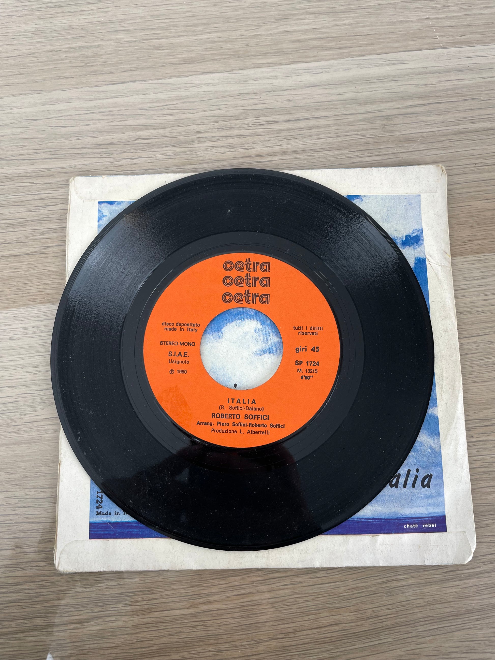 Disco 45 giri "Ti voglio tanto bene". Singolo originale su vinile 45 giri di Roberto Soffici, cantante italiano attivo tra la fine degli anni ’70 e i primi ’80. Ti Voglio Tanto Bene è un brano melodico e sentimentale, rappresentativo del pop italiano del periodo, mentre Italia propone un’atmosfera più riflessiva e intensa.