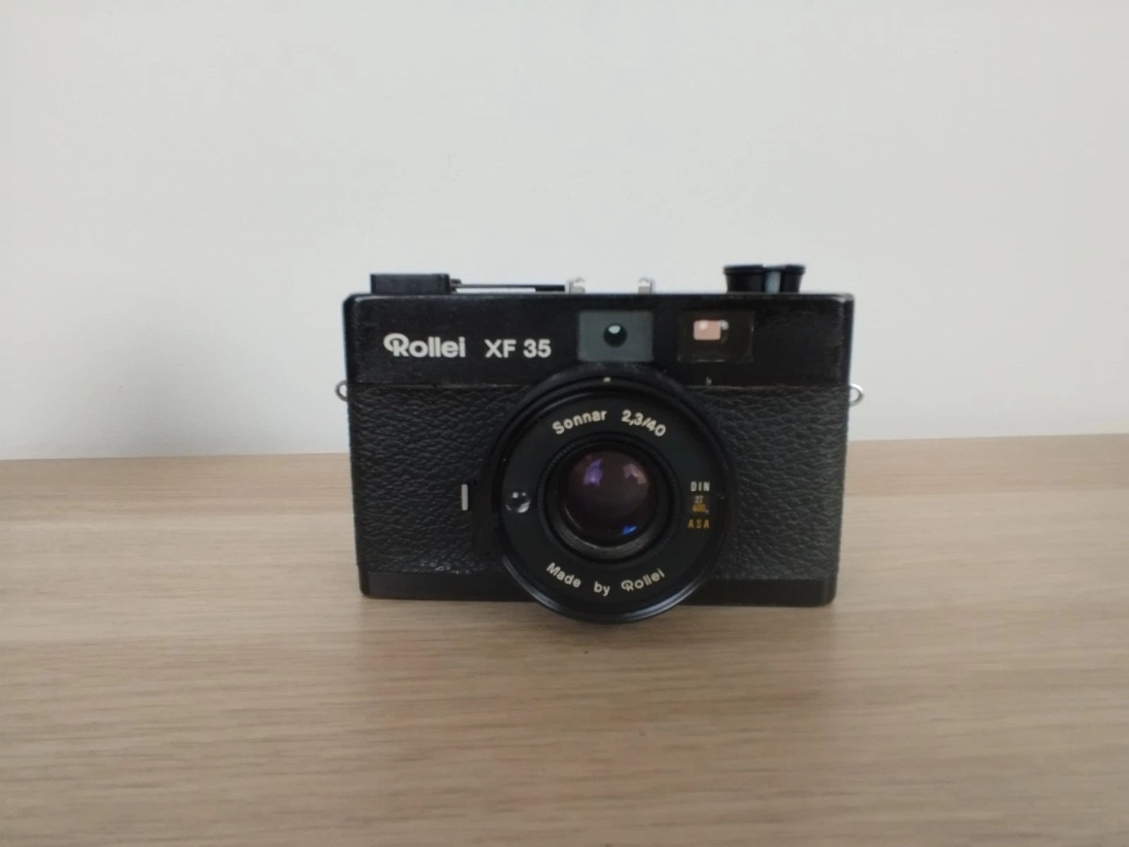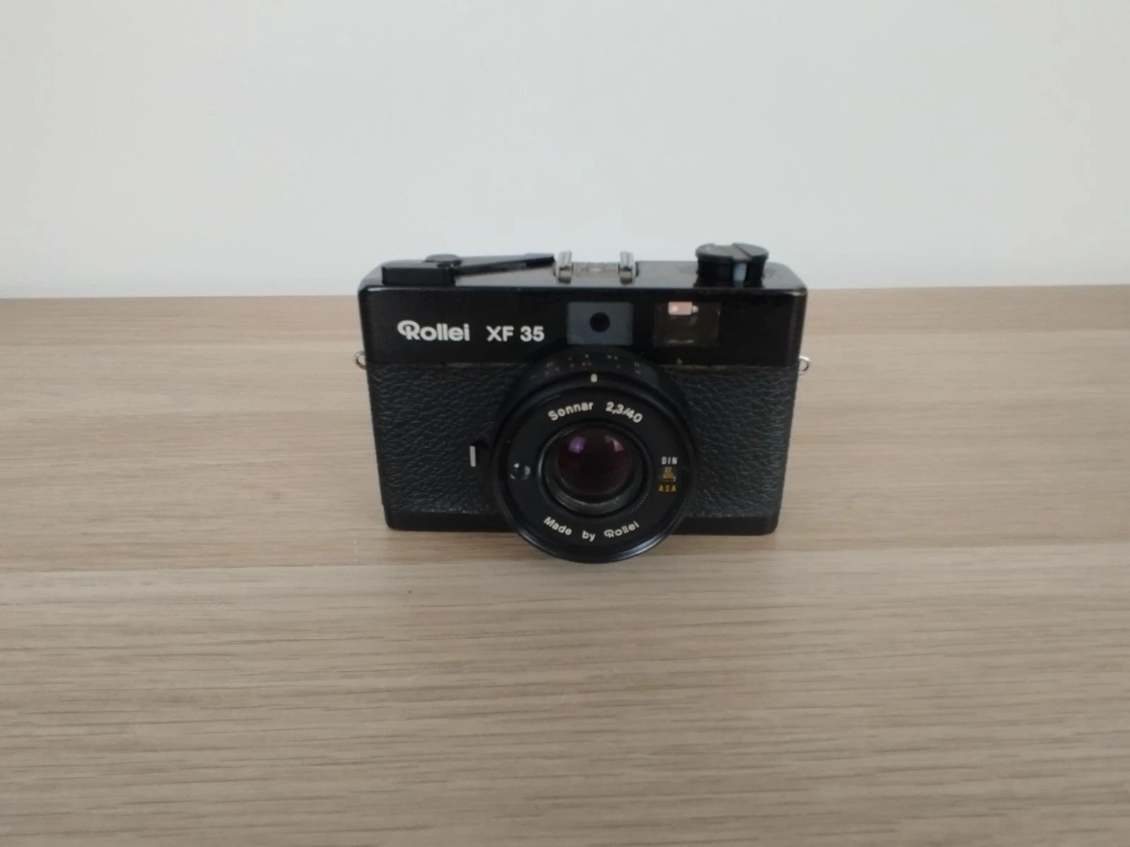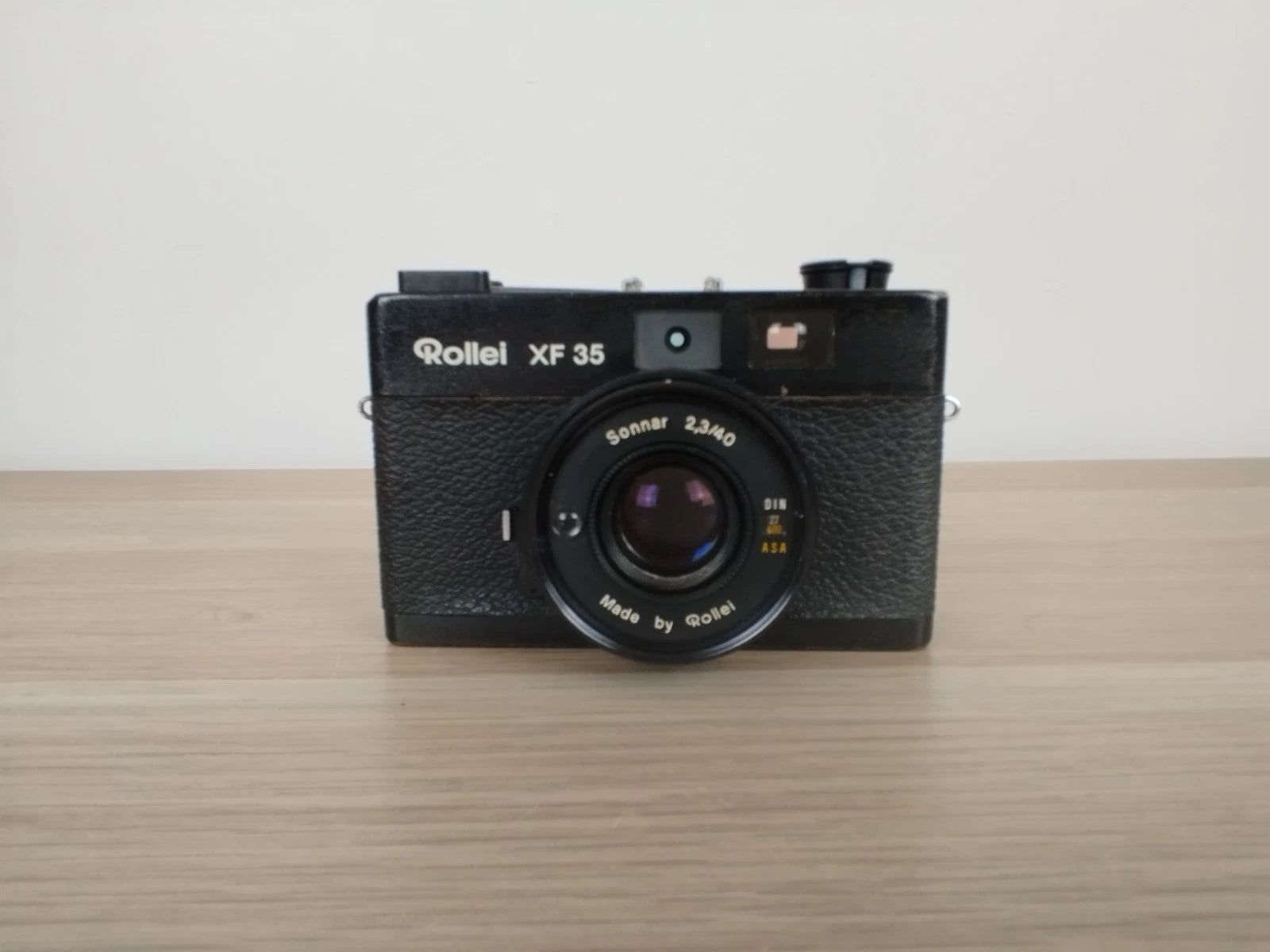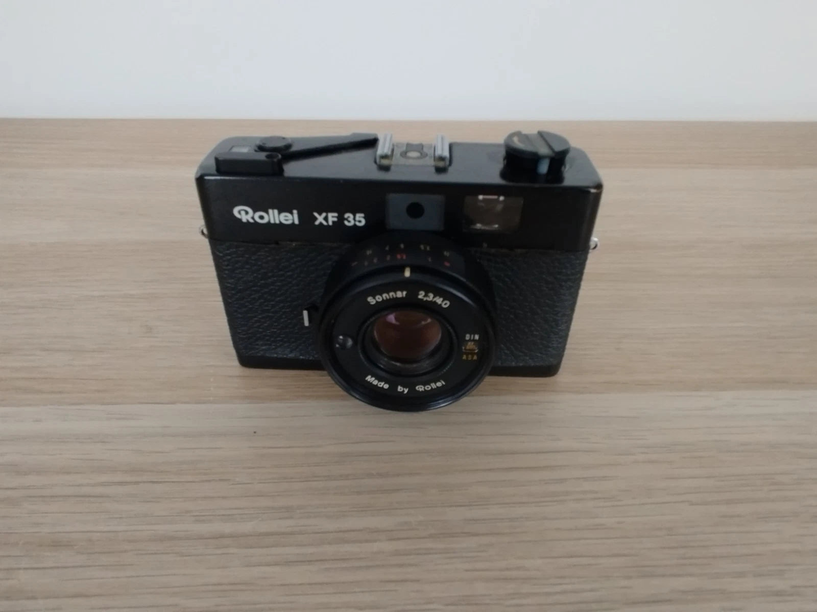 Fotocamera Analogica Rollei XF-35 con obiettivo Sonnar 35 di Rolle. Macchina fotografica 35mm, prodotta in Germania da Rollei‑Werke Franke & Heidecke (assemblato in Singapore) nel 1974 per il mercato tedesco.