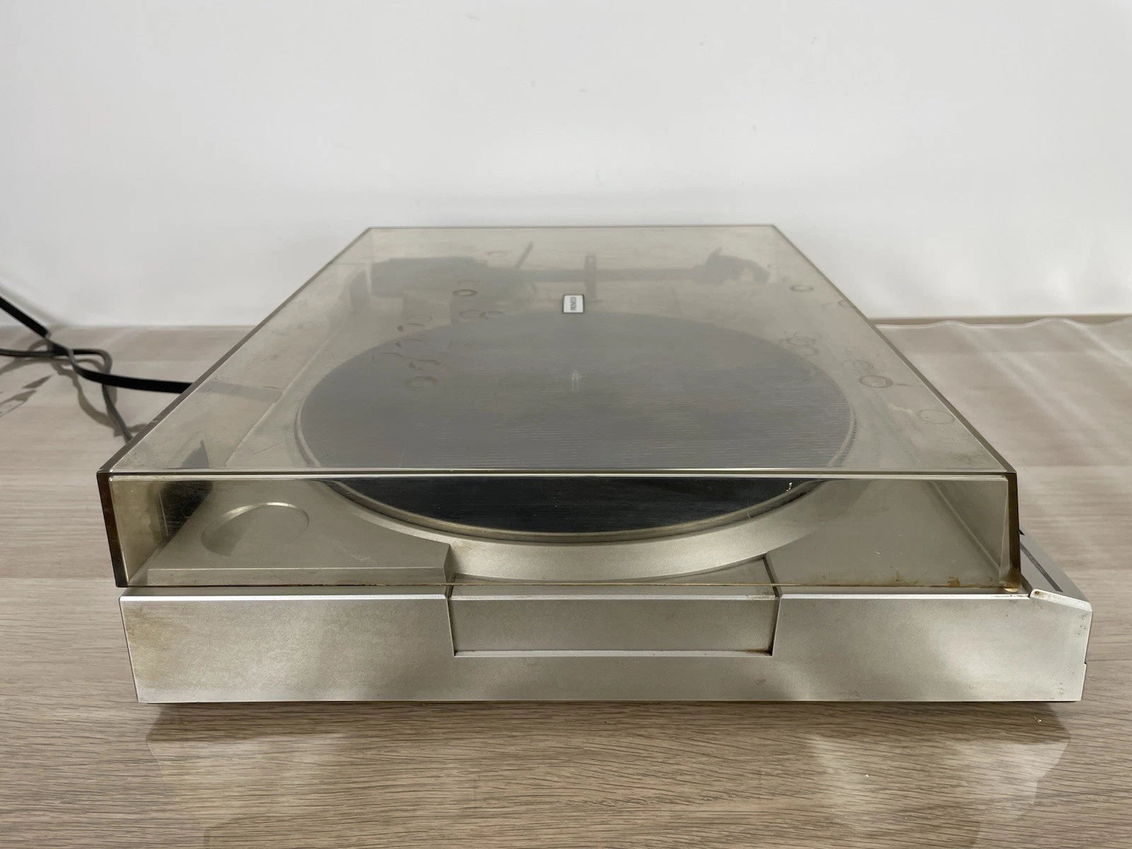Il giradischi si presenta in buono stato di conservazione, visionare attentamente le fotografie nel dettaglio. Presente qualche segno del tempo sulla scocca e soprattutto sul coperchio (ben visibili in foto), ma nel complesso risulta ben tenuto. Colore argento. Dimensioni: 420x106x375 mm - Peso 3,8 Kg. Adatto a dischi 33 giri e 45 giri. Collegato alla corrente si accende e testato con amplificatore e casse (non inclusi), risulta funzionante.