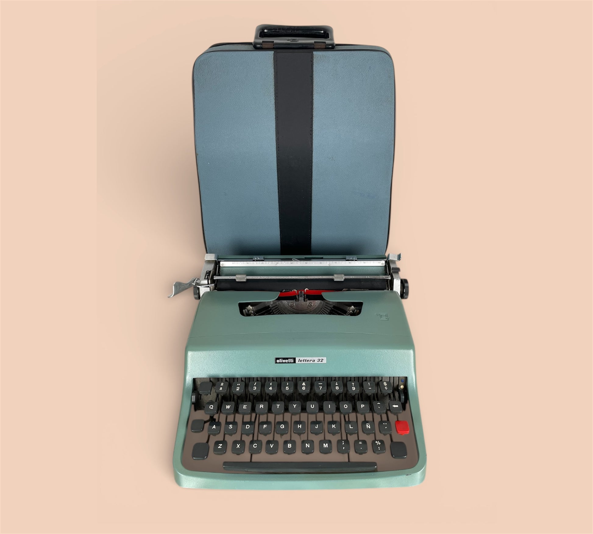 Macchina per scrivere Olivetti Lettera 32, prodotta da Olivetti nello stabilimento spagnolo a partire dal 1963. Ideata dall’architetto e designer Marcello Nizzoli.