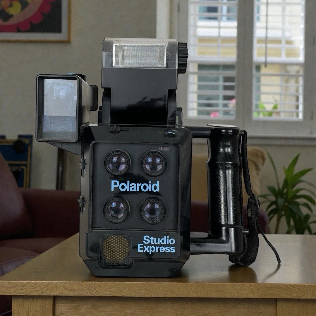 La Polaroid Studio Express è un modello storico degli anni ’80/’90, realizzato principalmente per scattare fototessere e ritratti su pellicola istantanea Polaroid Packfilm Tipo 100. Istantanea a pellicola packfilm, utilizza pellicola istantanea Polaroid Type 100 Packfilm (non inclusa).