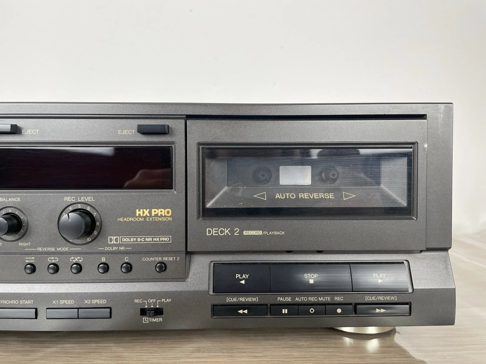 Caratteristiche principali: Dolby B/C – HX Pro; High-speed dubbing (doppia velocità); Auto reverse A/B; Synchro Start (per copia); Selettore tipo nastro: Normal / CrO₂ / Metal; Counter digitale; Auto tape selector; Indicatori a LED; HX-Pro; Automatic level; Dolby B/C selezionabile; Monitor sorgente/nastro; Rec mute. AC 220–240 V, 50/60 Hz Assorbimento: ~15–20 W.