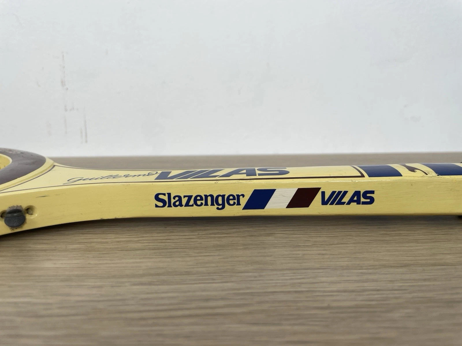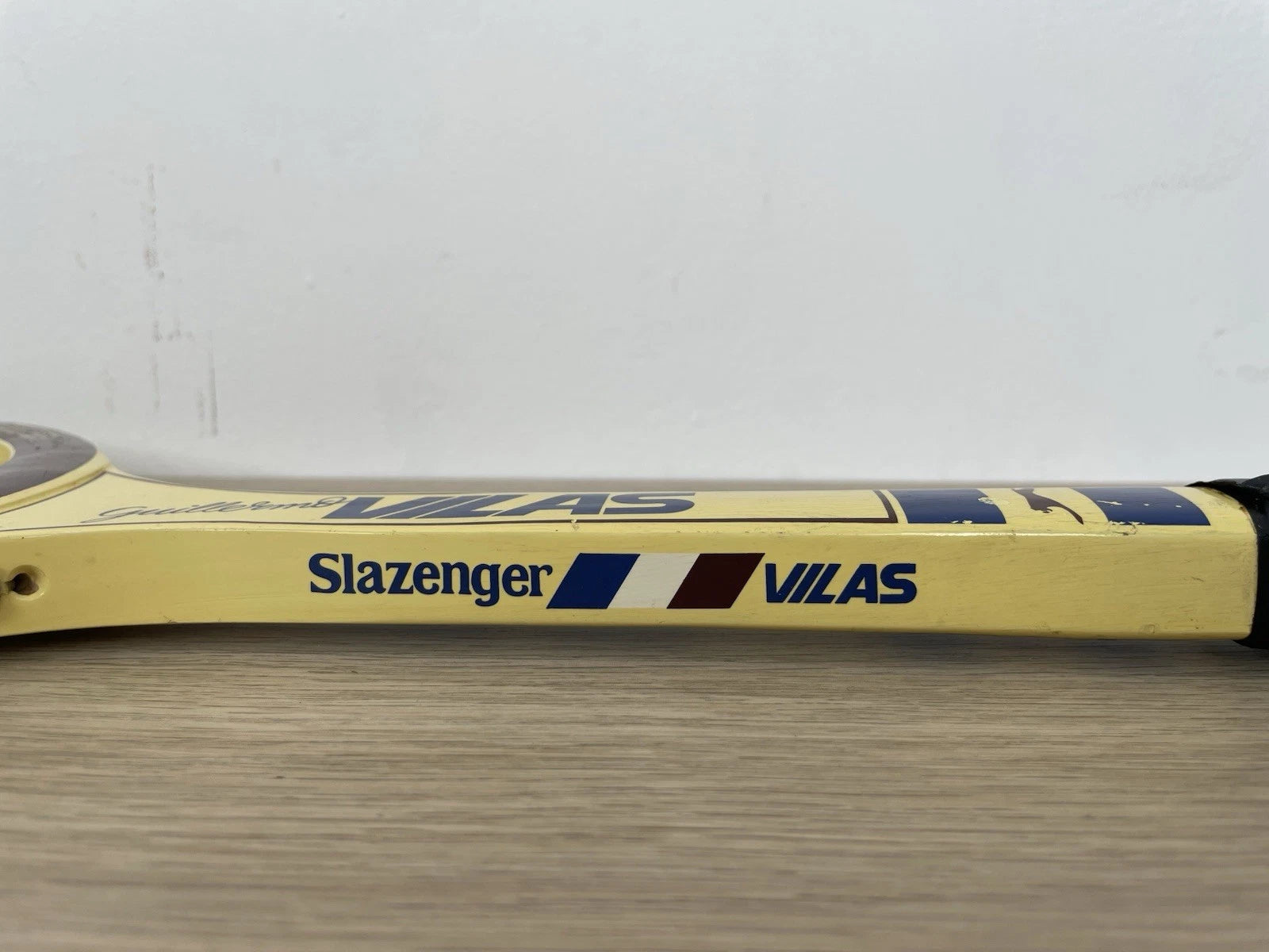 La racchetta si presenta in buone condizioni estetiche, visionare attentamente tutte le fotografie nel dettaglio. Presenta qualche inevitabile segno del tempo ben visibile in foto, soprattutto sull'impugnatura, ma nulla sembra precluderne il funzionamento; nel complesso risulta ben tenuta. Prodotta negli anni 70 in Regno Unito da Slazenger, che ha collaborato con Guillermo Vilas negli anni ’70 per creare una linea di racchette junior ispirate al suo stile di gioco. Queste racchette erano destinate principalmente a giovani giocatori ma mantenevano standard di qualità professionale tipici di Slazenger. Dotata di custodia originale con cerniera. Modello da collezione. Si vende solo ad uso collezionistico.