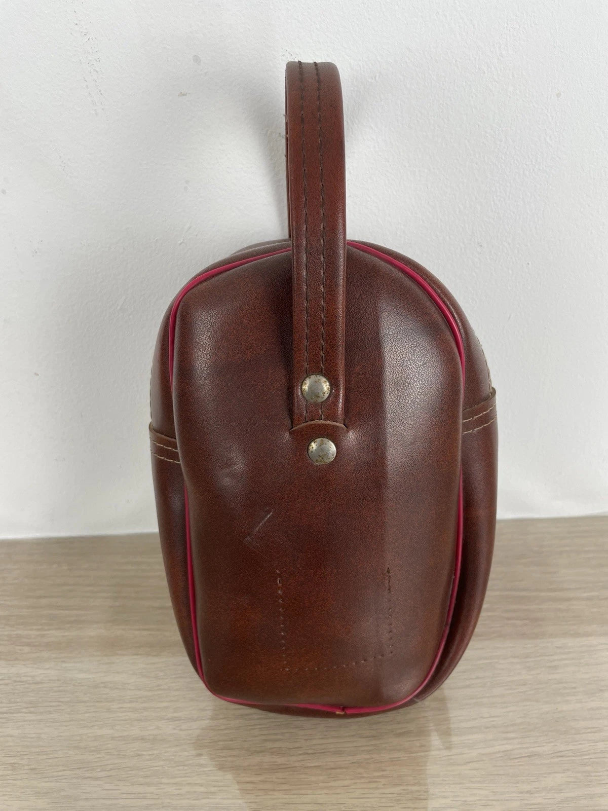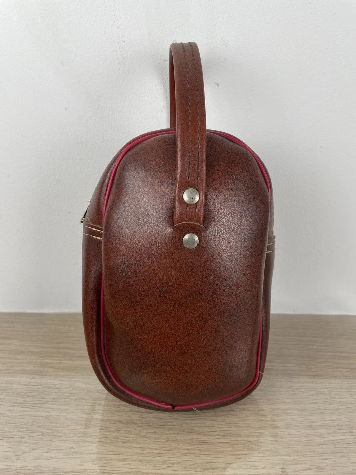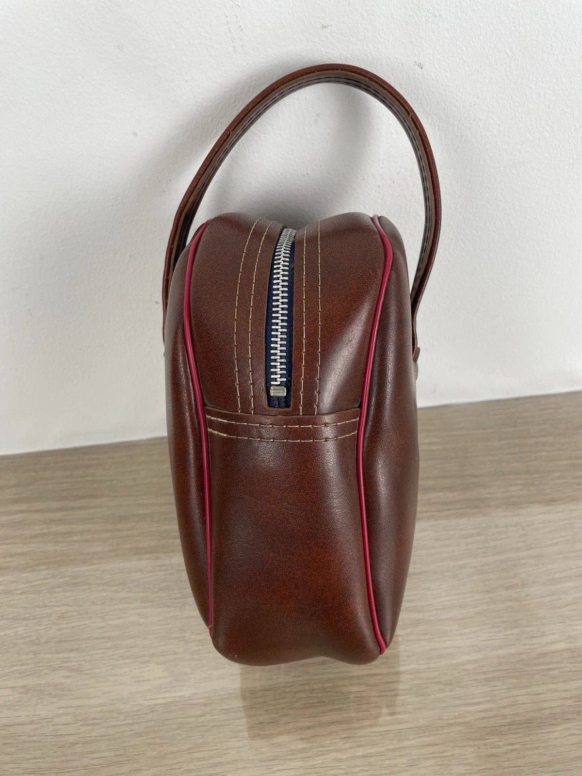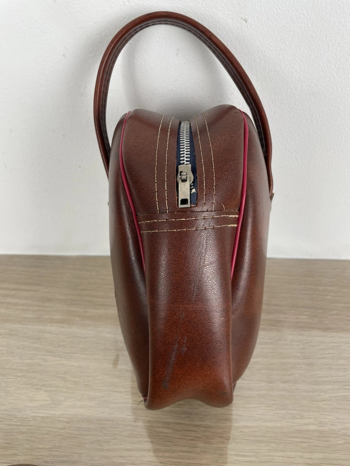 Set di 2 bocce da gioco professionali, con custodia a corredo vintage, colore marrone con inserti di colore rosso, con zip a chiusura e pezzuola per lucidatura.